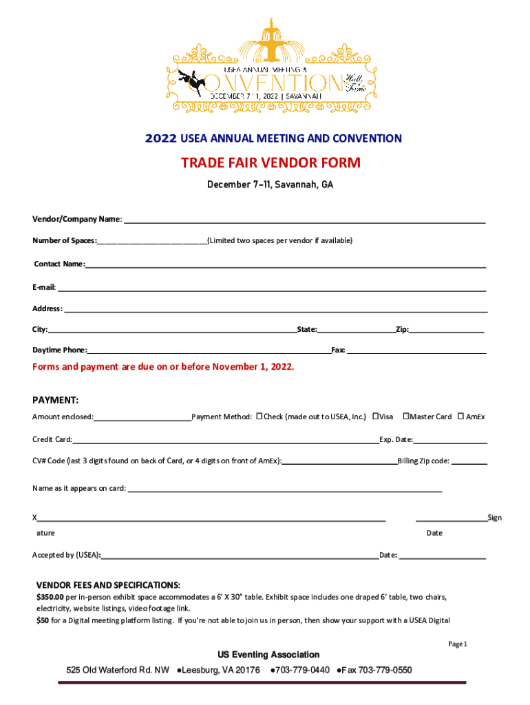 Get the free Vendor Registration - Convention - US Eventing Association
