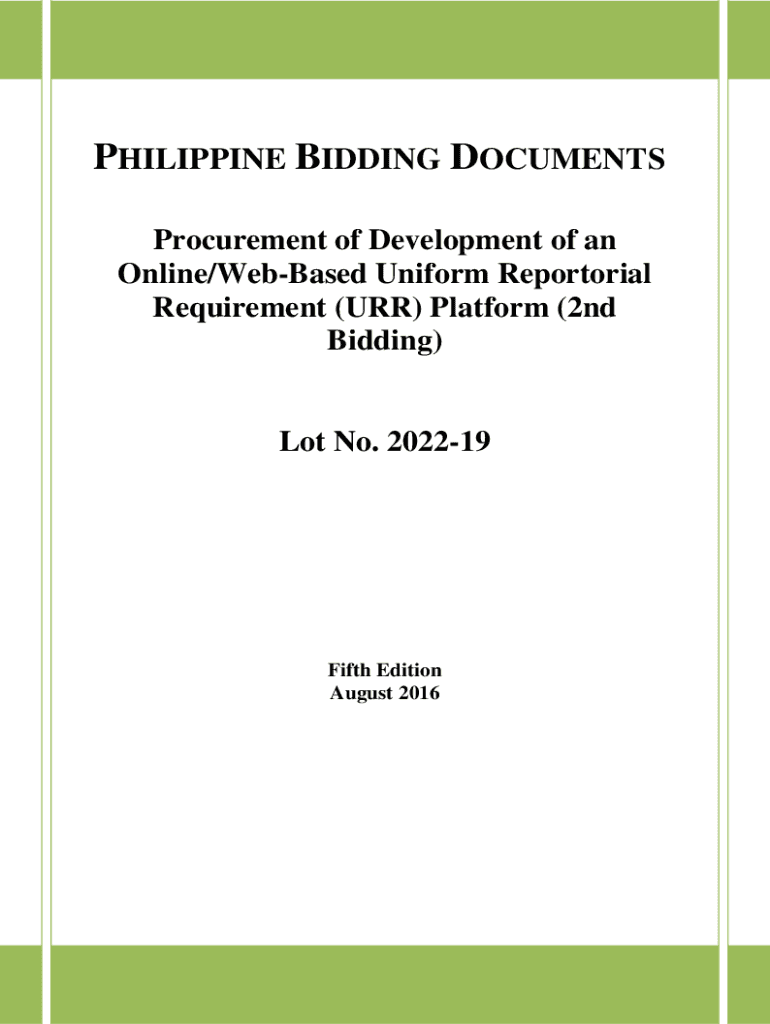PHILIPPINE BIDDING DOCUMENTS Procurement of Development of an Online/Webbed Uniform Reportorial Requirement (URL) Platform (2nd Bidding)Lot No. 202219Fifth Edition August 2016Preface These Philippine