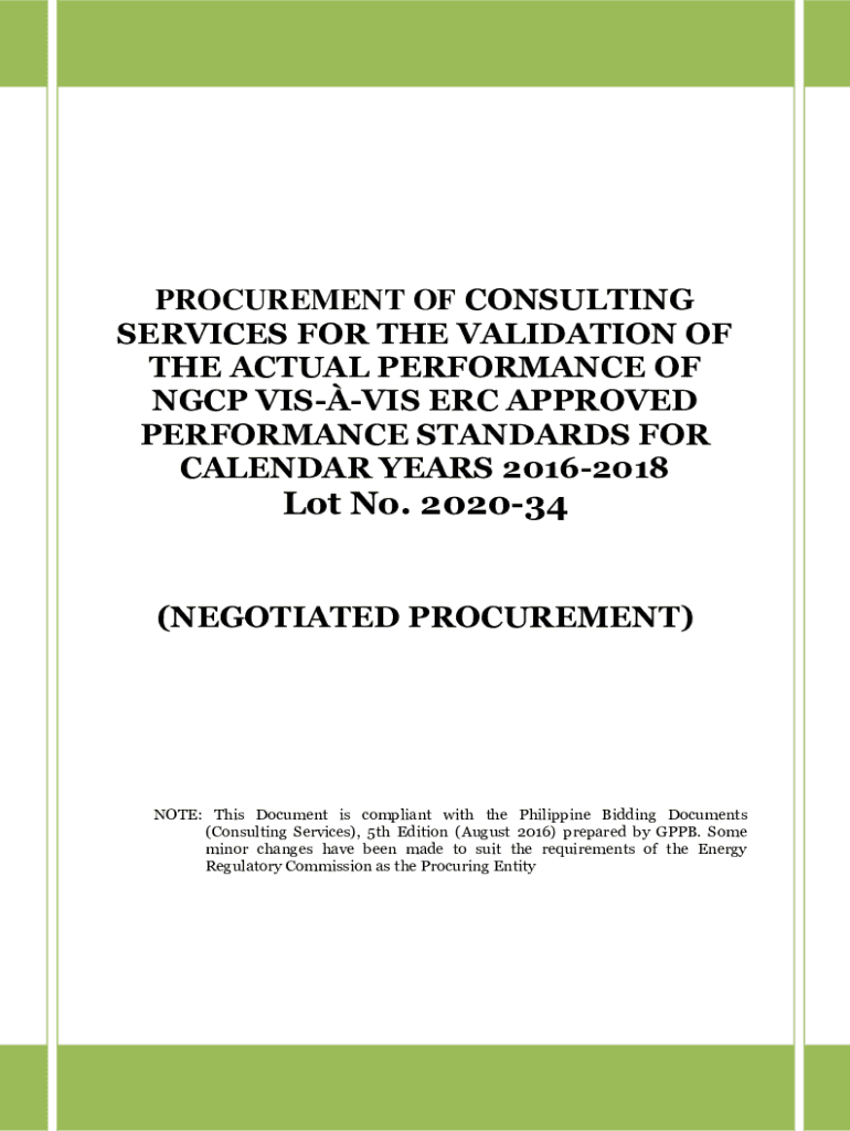 PROCUREMENT OF CONSULTING SERVICES FOR THE VALIDATION OF THE ACTUAL PERFORMANCE OF NGC VISIT ERC APPROVED PERFORMANCE STANDARDS FOR CALENDAR YEARS 20162018Lot No. 202034 (NEGOTIATED PROCUREMENT)NOTE: