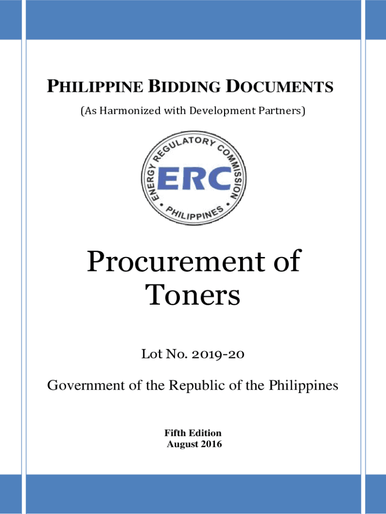 PHILIPPINE BIDDING DOCUMENTS (As Harmonized with Development Partners)Procurement of Toners Lot No. 201920Government of the Republic of the Philippines Fifth Edition August 2016Preface These Philippine