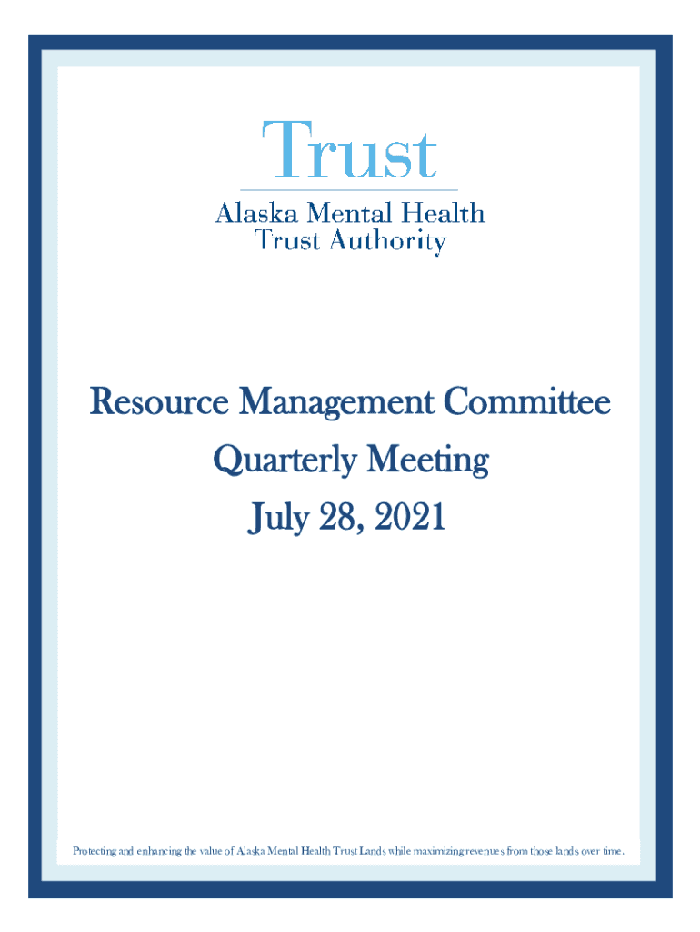 July 28, 2021Protecting and enhancing the value of Alaska Mental Health Trust Lands while maximizing revenues from those lands over time. Meeting Agenda