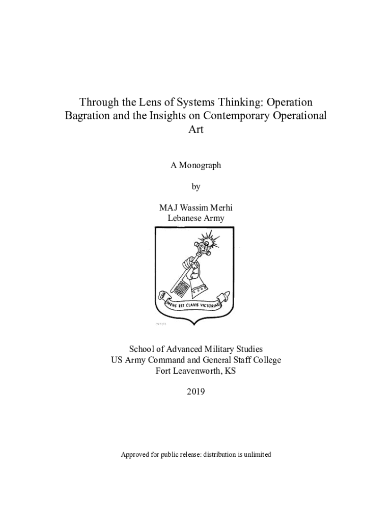 Through the Lens of Systems Thinking: Operation Bag ration and the Insights on Contemporary Operational Art A Monograph by MAJ Passim Merci Lebanese Preschool of Advanced Military Studies US Army