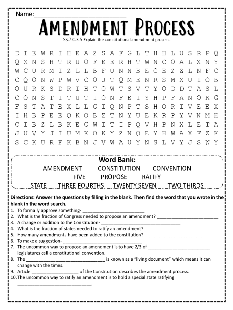 Name:___Amendment Process SS.7. C.3.5 Explain the constitutional amendment process. D Q W C O C F I C J SI X C Q U O S H I U CE N U O R N T B B V KW S R N K S A P Z Y UR H M W S T T E L J RI T I P