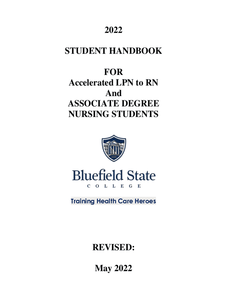 2022 STUDENT HANDBOOK FOR Accelerated LPN to RN And ASSOCIATE DEGREE NURSING STUDENTSTraining Health Care HeroesREVISED: May 2022Bluefield State College AD Nursing Handbook 2022Dear Nursing Student,