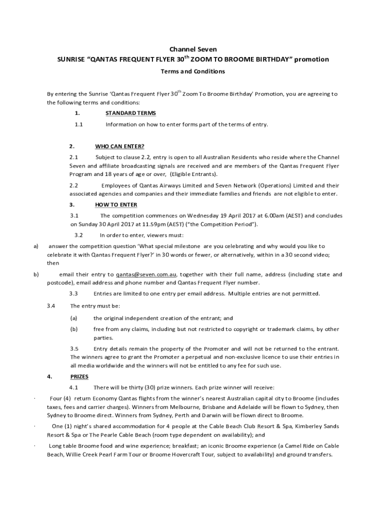 Get the free Qantas 30th Birthday T&Cs - Final.docx