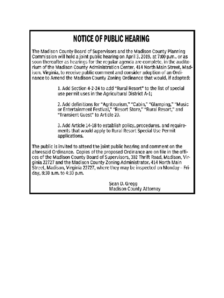 ZONING ORDINANCE # 2019 WHEREAS, THE Board of Supervisors of Madison County, Virginia, finds that the