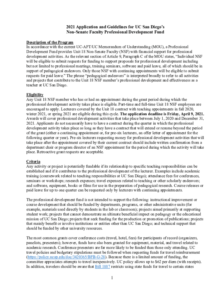 2021 Application and Guidelines for UC San Diego's NonSenate Faculty Professional Development Fund Description of the Program In accordance with the current UC AFT/UC Memorandum of Understanding (YOU),