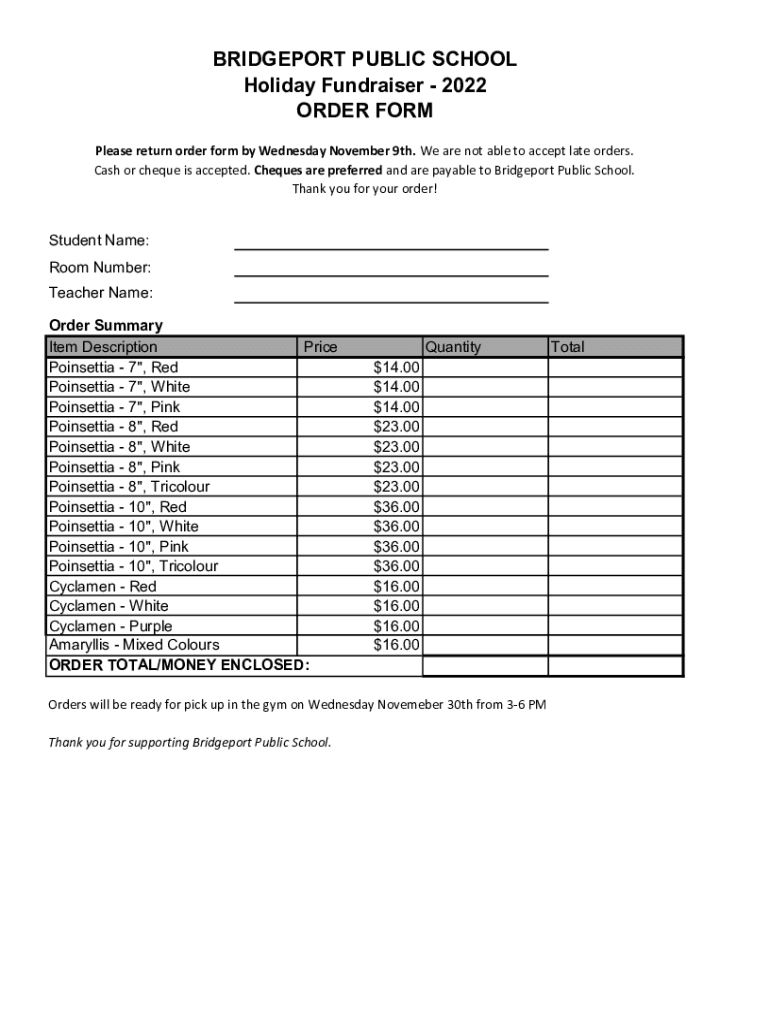 Get the free Bridgeport Holiday Fundraiser 2022 Order Form.xlsx