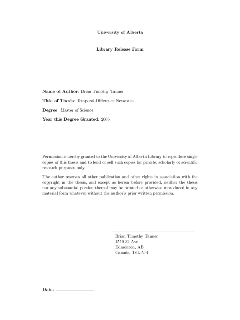 Get the free University of Alberta Library Release Form Name of Author: Brian ...