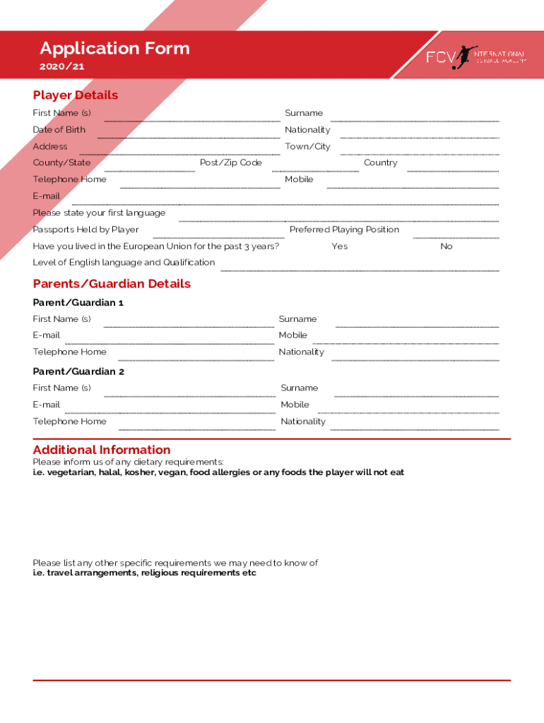First Name (s)SurnameDate of BirthNationalityAddressTown/CityCounty/State Post/Zip CodeTelephone HomeCountry