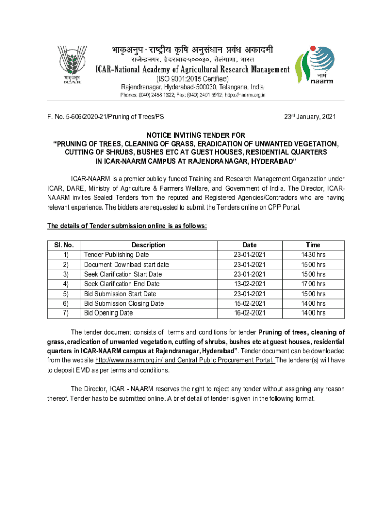 Get the free NOTICE INVITING TENDER FOR PRUNING OF TREES ... - naarm org