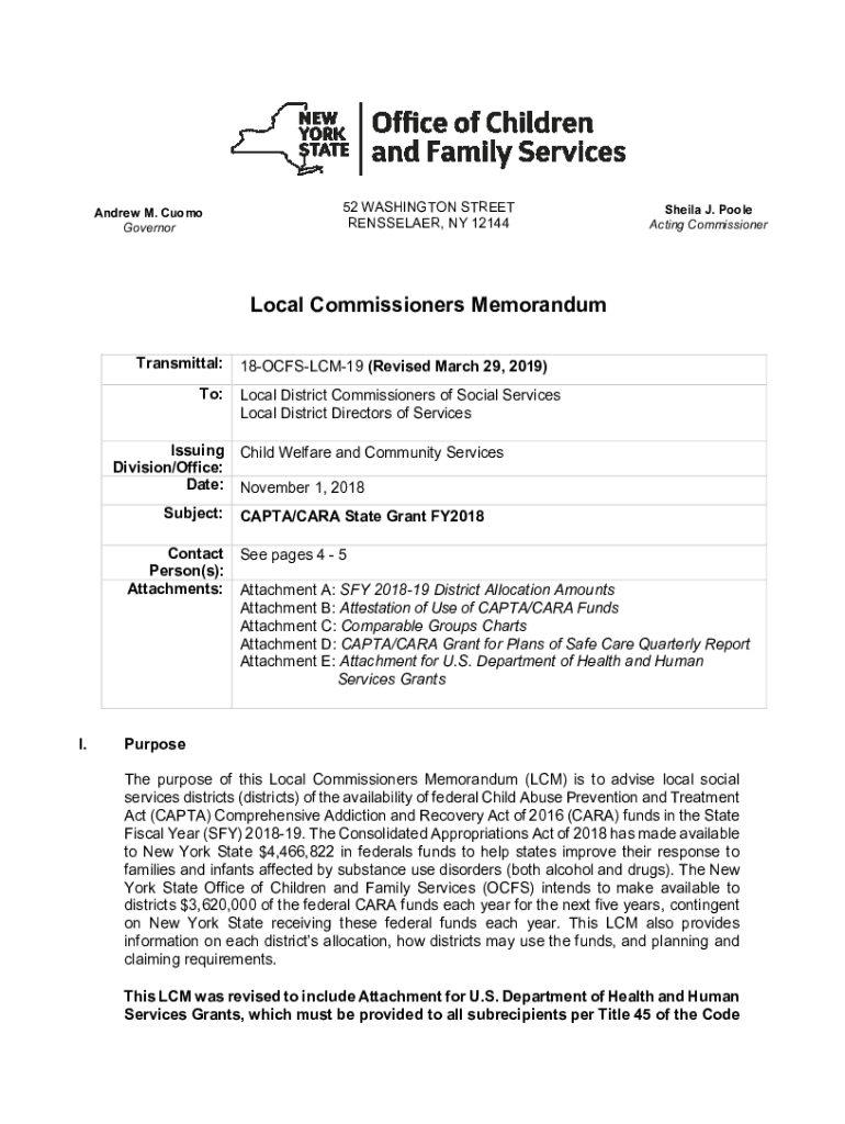 Andrew M. Cuomo Governor52 WASHINGTON STREET RENSSELAER, NY 12144Sheila J. Poole Acting CommissionerLocal Commissioners Memorandum Transmittal: To: Issuing Division/Office: Date: Subject: Contact