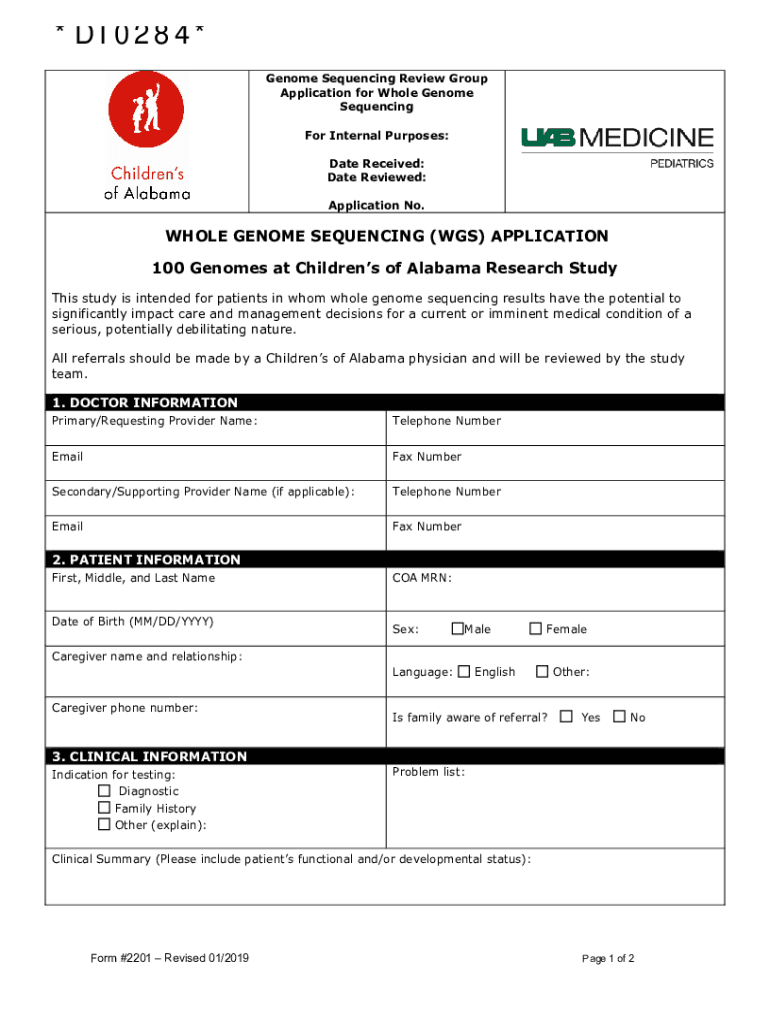 Get the free Referral Form - Whole Genome Sequencing (2201)