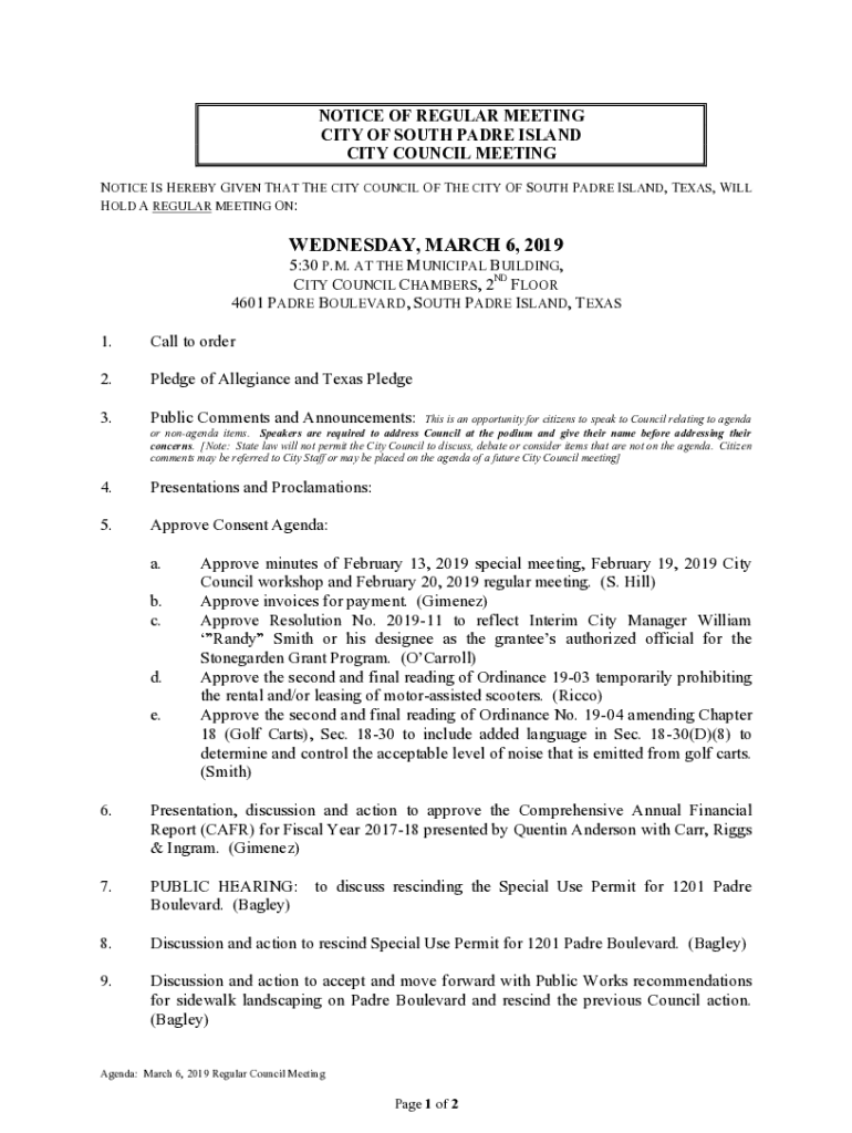 Get the free NOTICE IS HEREBY GIVEN THAT THE CITY COUNCIL OF THE CITY OF SOUTH PADRE ISLAND, TEXA...