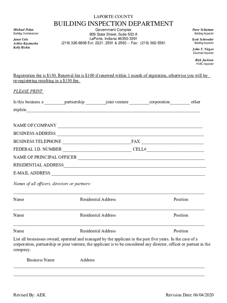 Get the free BUILDING INSPECTION DEPARTMENT - LaPorte County