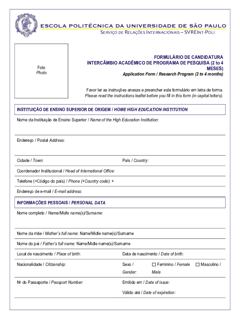 Devem ser informadas informações como nome dos participantes, duração do intercâmbio, país de destino, instituição de acolhimento, entre outras.