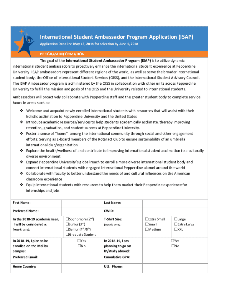 Get the free International Student Ambassador Program Application (ISAP)