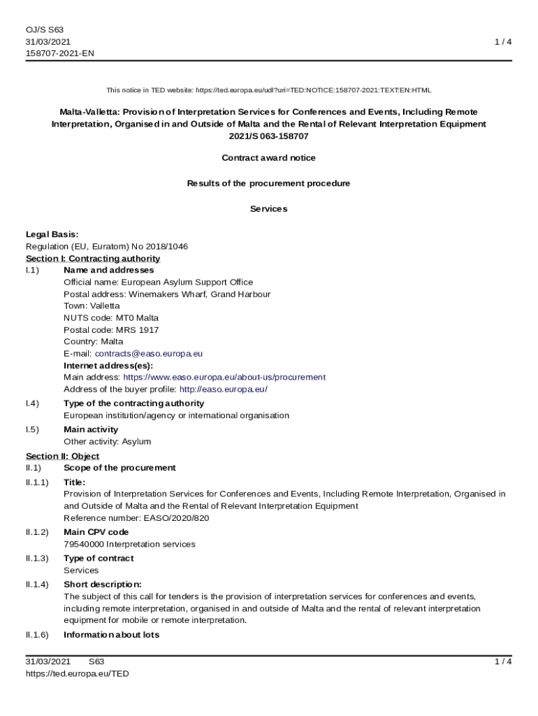 OJ/S S63 31/03/2021 1587072021EN1/4This notice in TED website: https://ted.europa.eu/udl?uriTED:NOTICE:1587072021:TEXT:EN:HTMLMaltaValletta: Provision of Interpretation Services for Conferences and