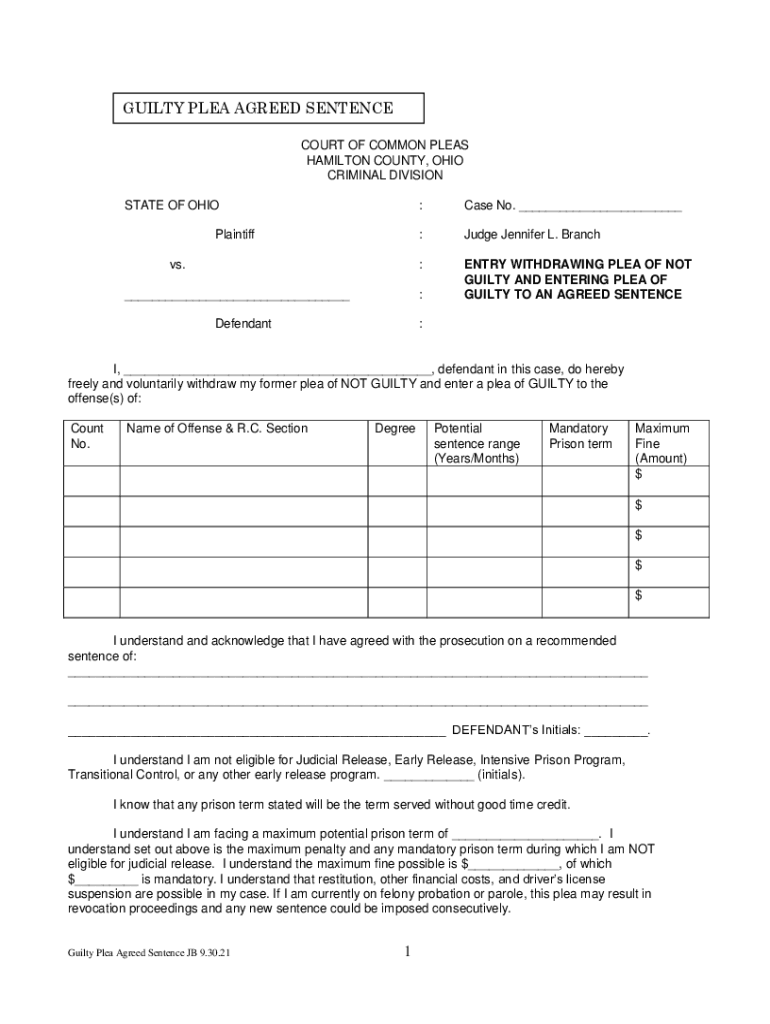 Get the free guilty plea agreed sentence - Hamilton County Courts