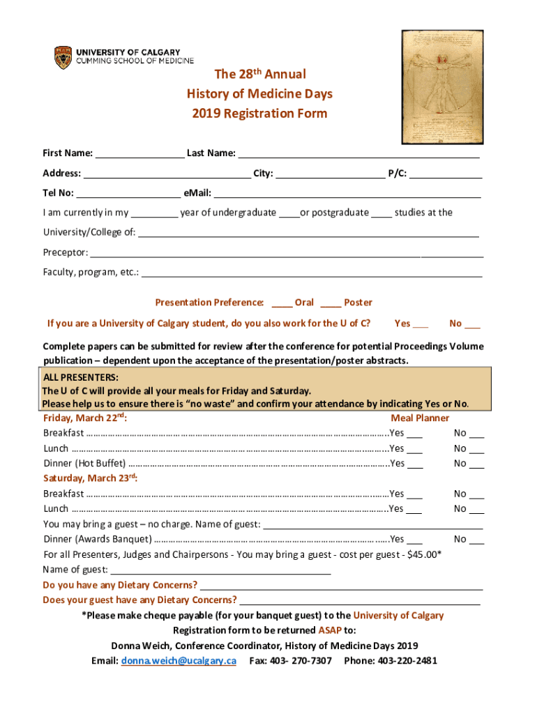 Get the free The 28th Annual History of Medicine Days 2019 Registration ...
