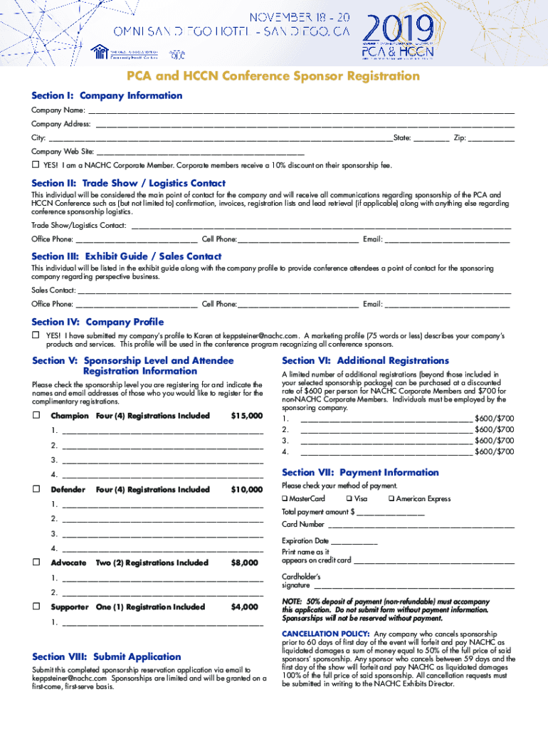 PCA and HCC Conference Sponsor Registration Section I: Company Information Company Name: ___ Company Address: ___ City:___State: ___ Zip: ___ Company Website: ___YES! I am a NACHO Corporate Member.