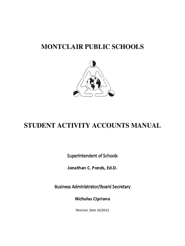 MONTCLAIR PUBLIC SCHOOLSSTUDENT ACTIVITY ACCOUNTS MANUALSuperintendent of Schools