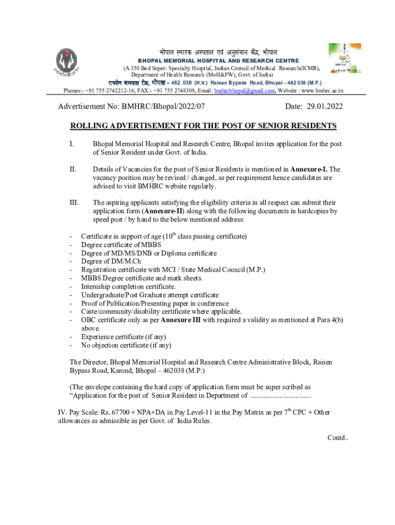 BHOPAL MEMORIAL HOSPITAL AND RESEARCH Center(A 350 Bed Super Specialty Hospital, Indian Council of Medical Research(ICMR),