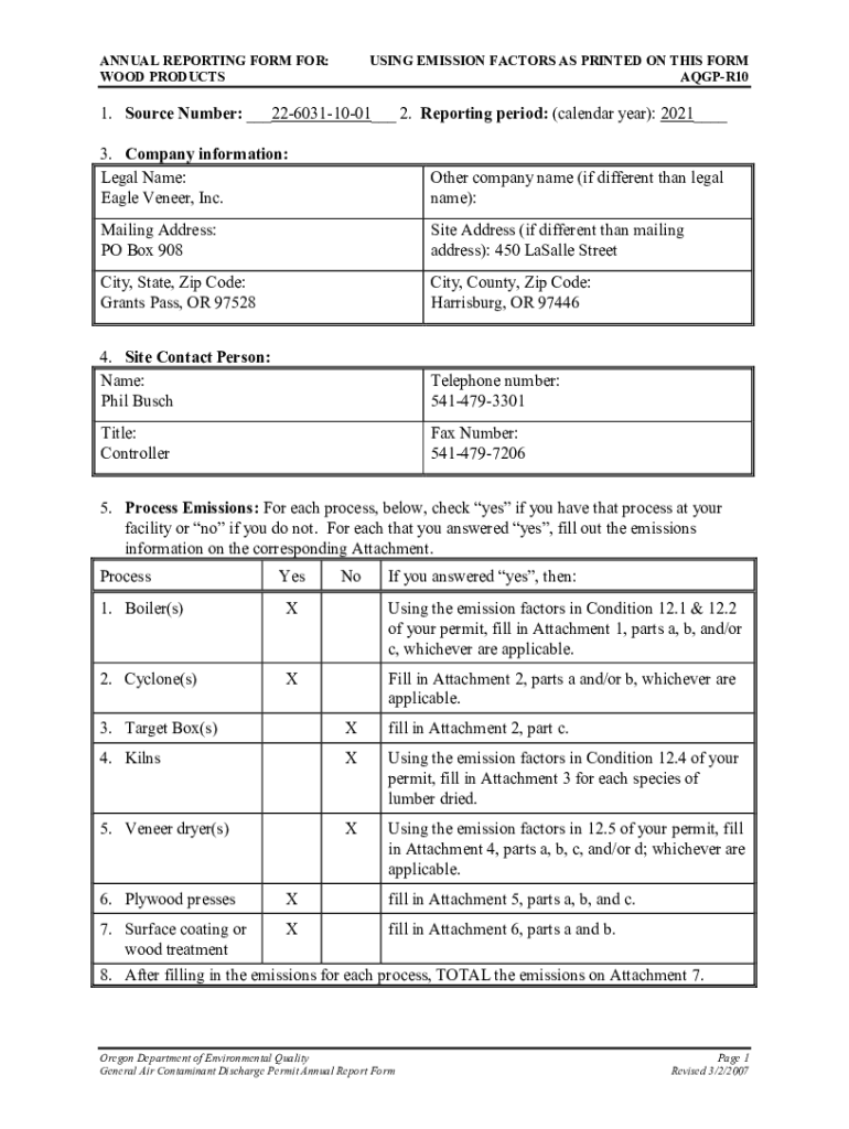 WOOD PRODUCTSUSING EMISSION FACTORS AS PRINTED ON THIS FORM