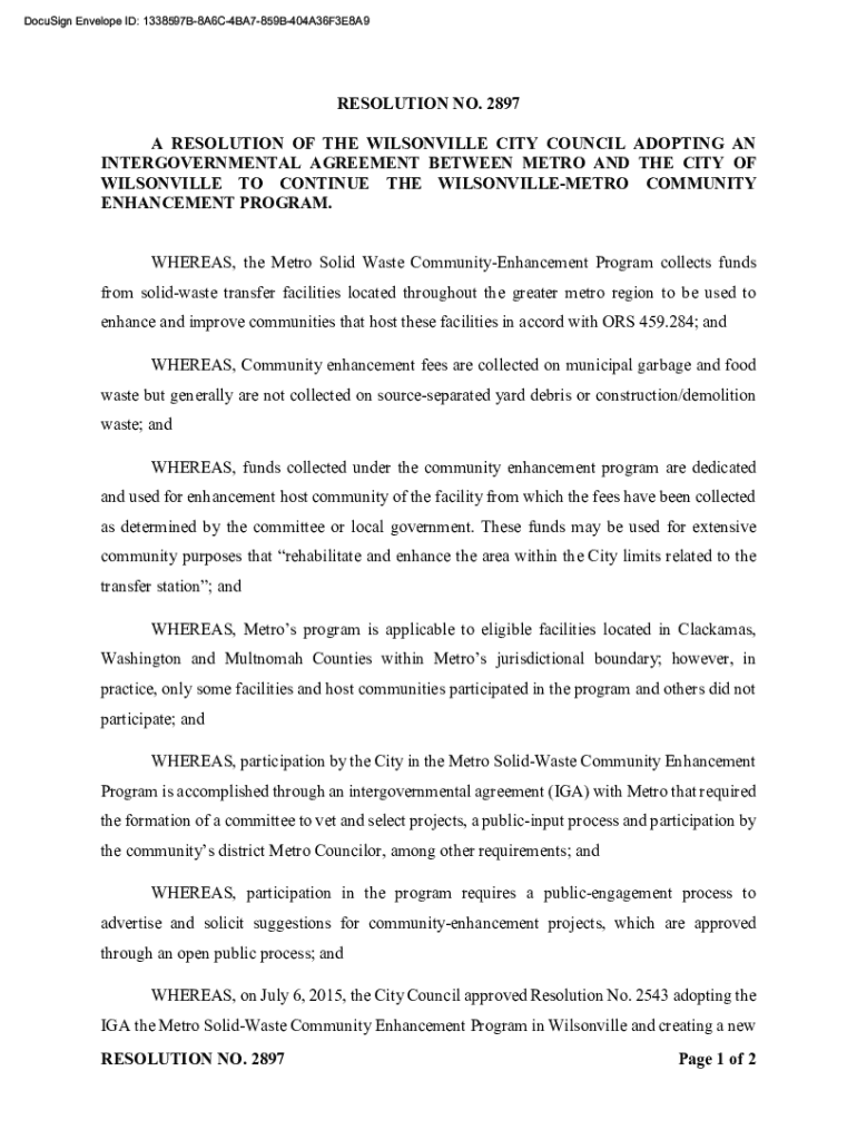 RESOLUTION NO. 2897