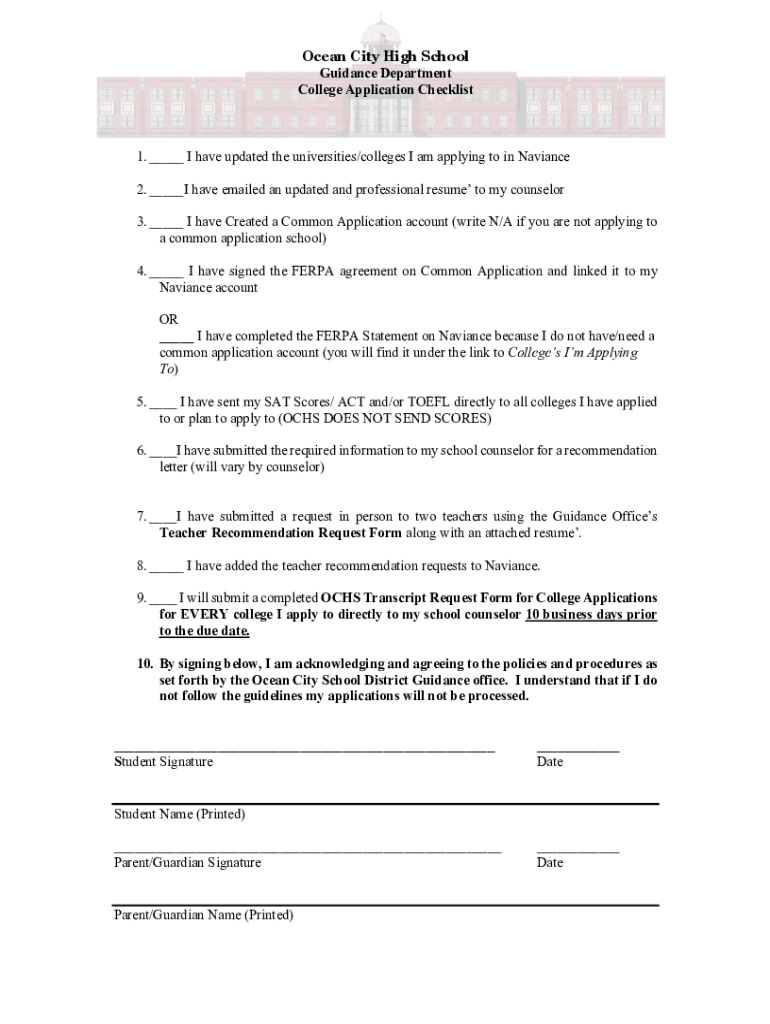 Get the free College Application Checklist - Ocean City School District