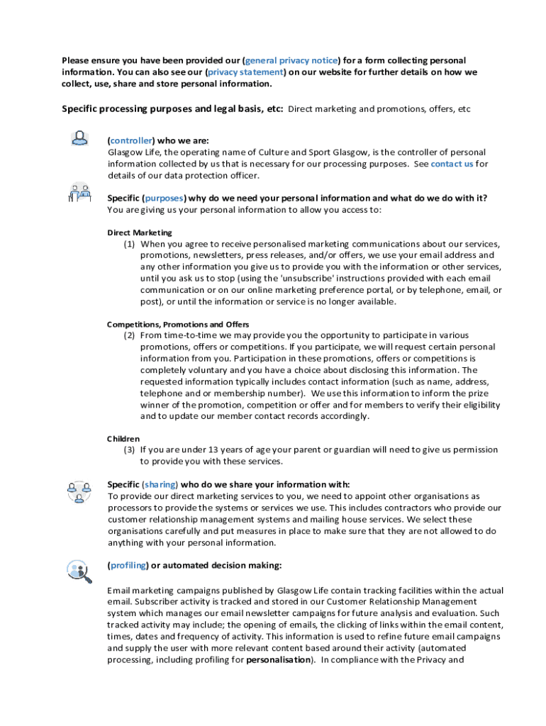 Please ensure you have been provided our (general privacy notice) for a form collecting personal information. You can also see our (privacy statement) on our website for further details on how we