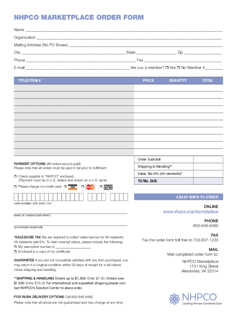 NPC MARKETPLACE ORDER FORM Name ___ Organization ___ Mailing Address (No PO Boxes) ___ City ___ State ___ Zip ___ Phone ___ Fax ___ Email ___ Are you a member? R Yes r No Member #___ TITLE/ITEM #PREPAYMENT