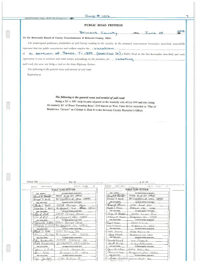 ___* t UuiunthaSoutheastem Printing, 18008371904, Reorder 27101AcoPUBLIC ROAD PETITION, cc Ohio, To the Honorable Board of County Commissioners of Belmont County, Ohio: The undersigned petitioners,