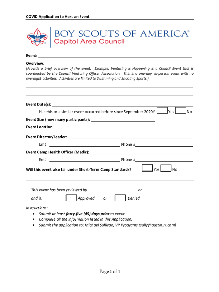 COVID-19 Application to Host a Seventeen: ___ Overview:(Provide a brief overview of the event. Example: Venturing is Happening is a Council Event that is coordinated by the Council Venturing Officer