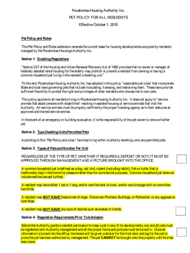 Get the free Pocahontas Housing Authority Inc. PET POLICY FOR ALL ...