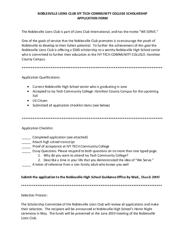 Get the free noblesville lions club ivy tech community college scholarship