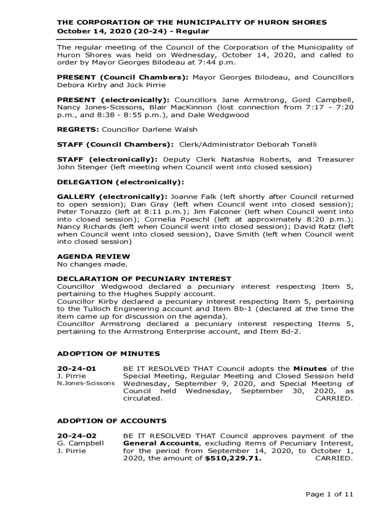 THE CORPORATION OF THE MUNICIPALITY OF HURON SHORES