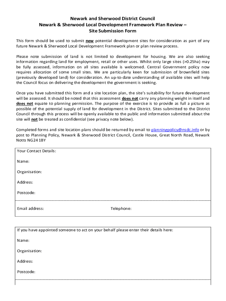 Newark and Sherwood District Council Newark & Sherwood Local Development Framework Plan Review Site Submission Form This form should be used to submit new potential development sites for consideration