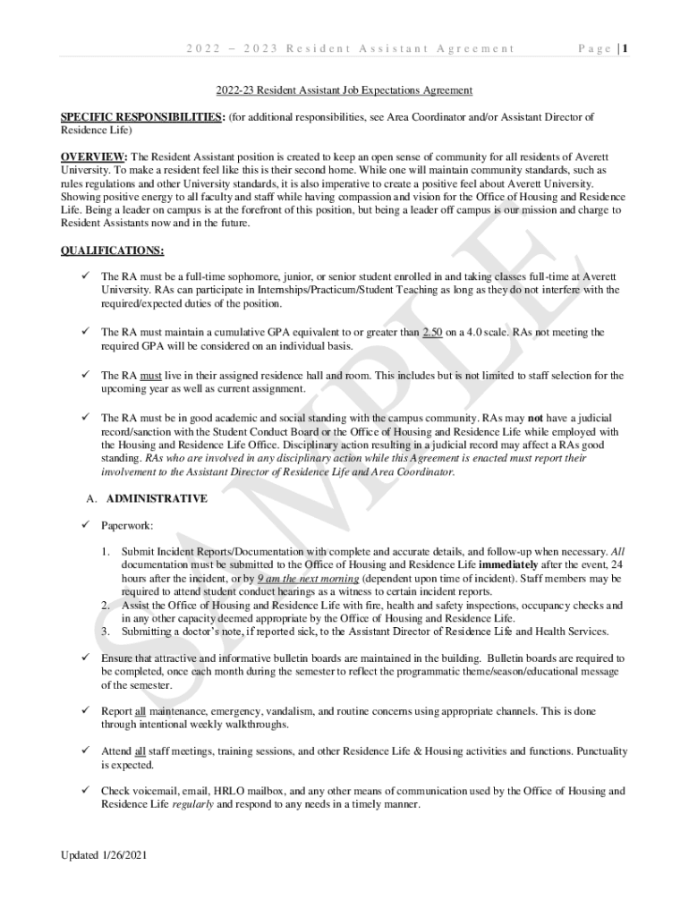 Get the free Resident Assistant Agreement