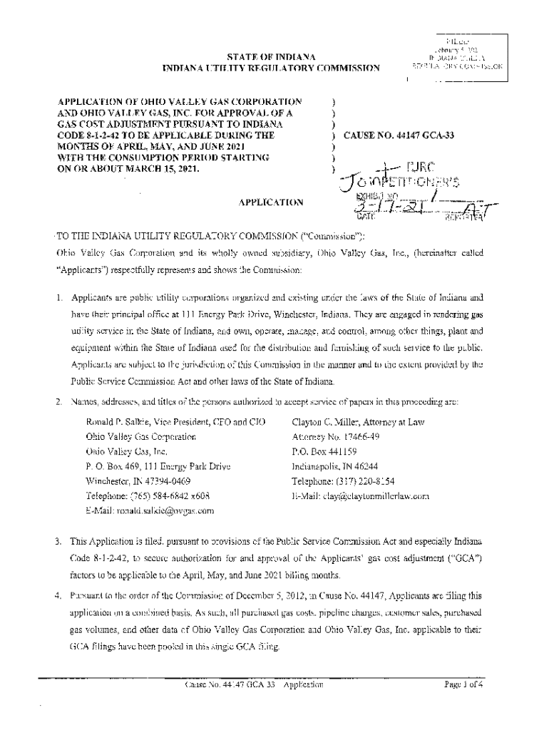 FILEDSTATE OF INDIANA UTILITY REGULATORY COMMISSION February 5, 2021
