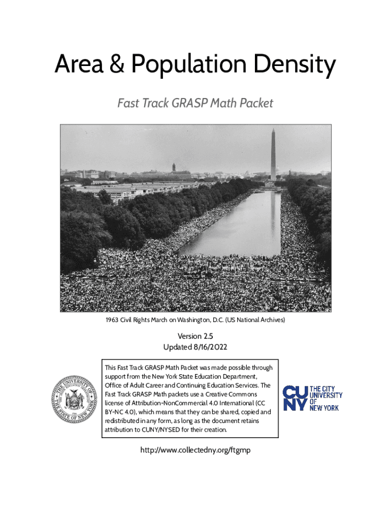 Area & Population Density Fast Track GRASP Math Packet1963 Civil Rights March on Washington, D.C. (US National Archives)Version 2.5 Updated 8/16/2022 This Fast Track GRASP Math Packet was made possible