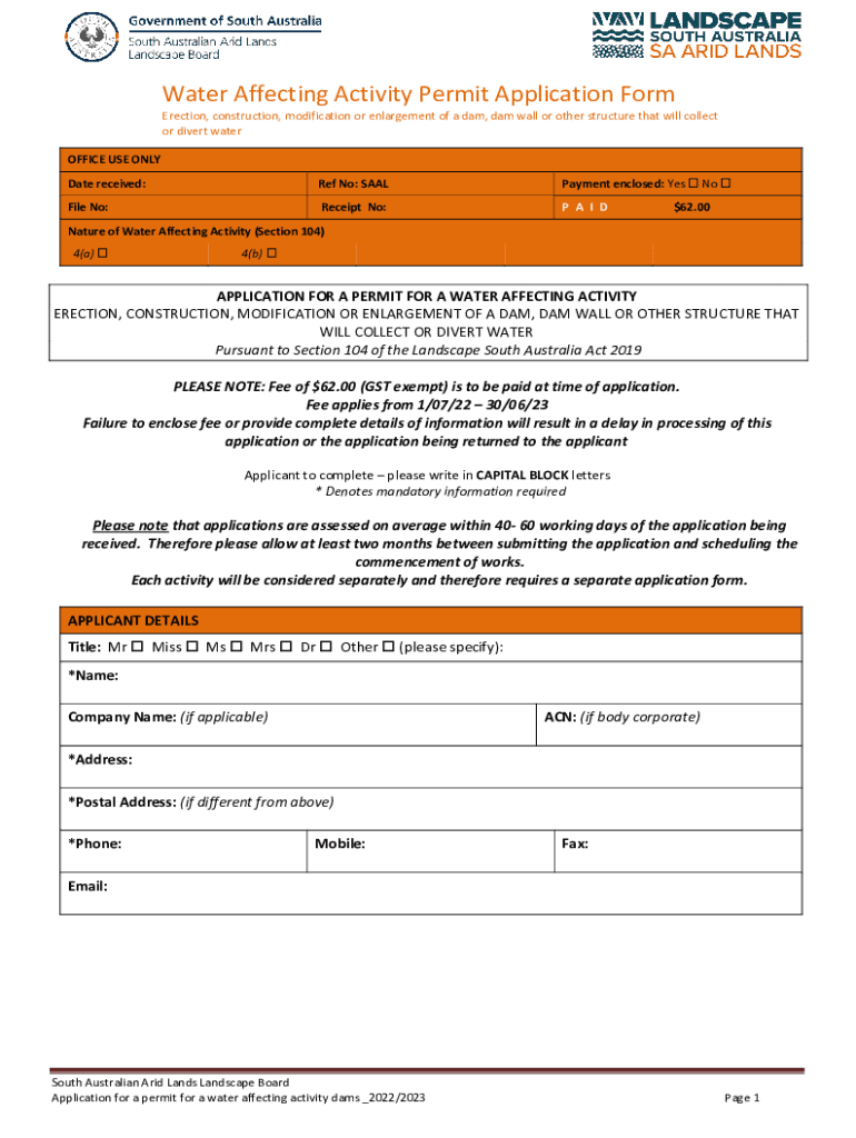 Get the free Water Affecting Activity Permit Application Form