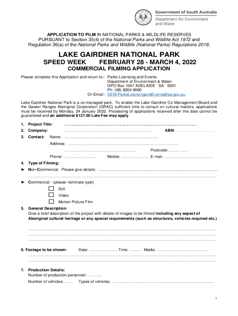 Lake Gairdner National Park is not the form you're looking for?Search for another form here.