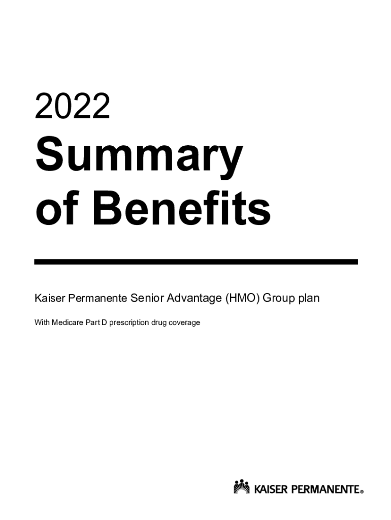 With Medicare Part D prescription drug coverageAbout this Summary of BenefitsThank you for considering Kaiser Permanent Senior