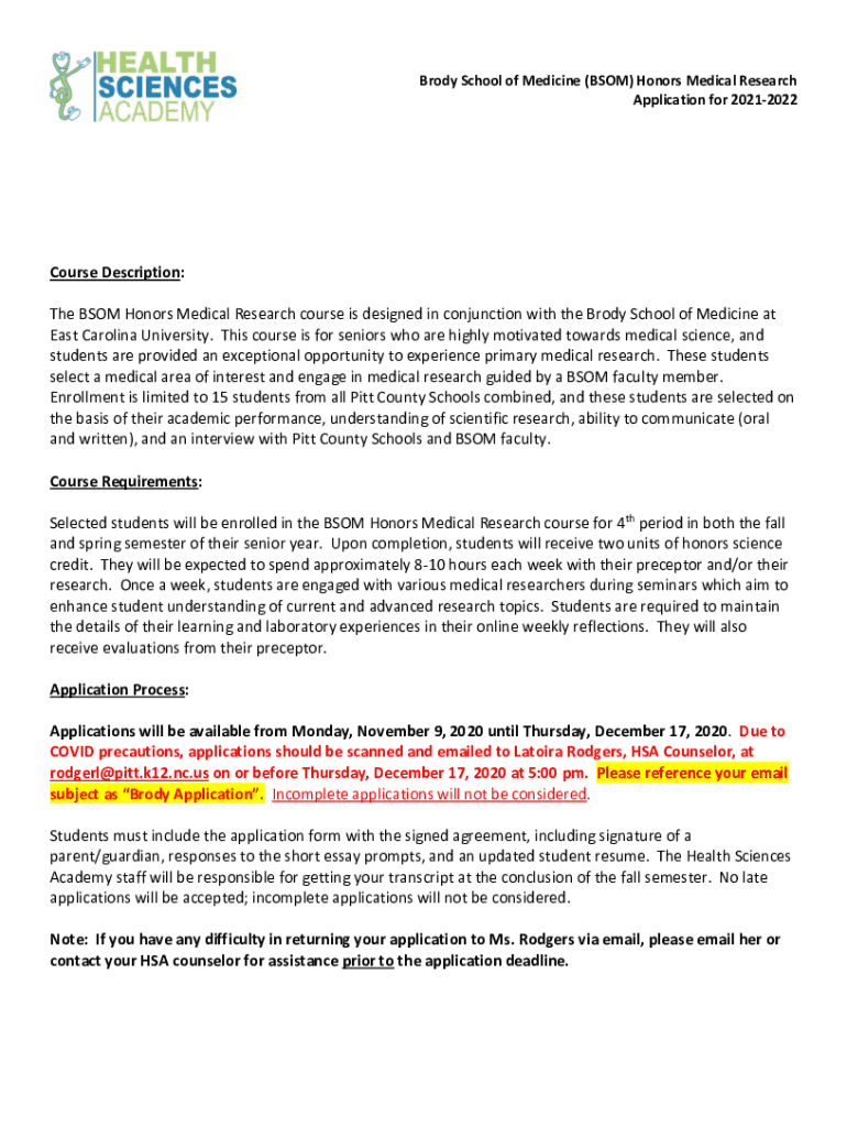 Get the free Brody School of Medicine (BSOM) Honors Medical Research ...