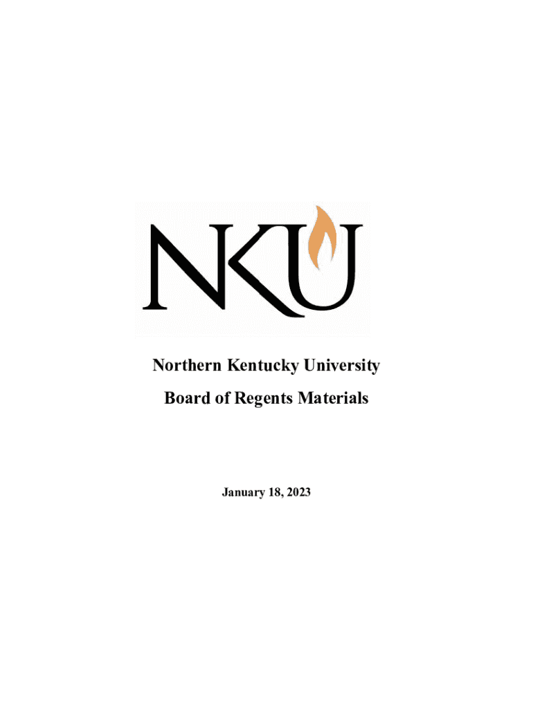Northern Kentucky University Board of Regents Materials January 18, 2023TABLE OF CONTENTS MATERIALS AGENDA January 18, 2023, Meeting Agenda .............................................................................................................