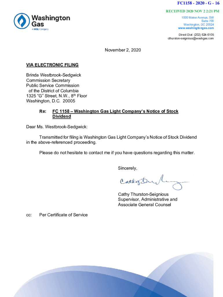 Get the free FC 1158 Washington Gas Light Companys Notice of Stock - edocket dcpsc