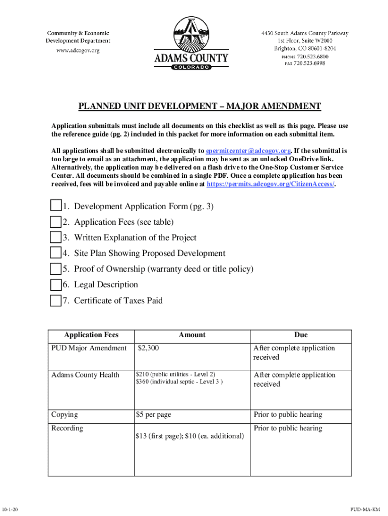 PLANNED UNIT DEVELOPMENT MAJOR AMENDMENT Application submittals must include all documents on this checklist as well as this page. Please use the reference guide (pg. 2) included in this packet for