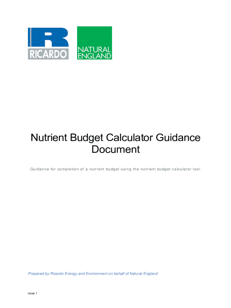Nutrient Budget Calculator Guidance Document Guidance for completion of a nutrient budget using the nutrient budget calculator toolPrepared by Ricardo Energy and Environment on behalf of Natural EnglandIssue
