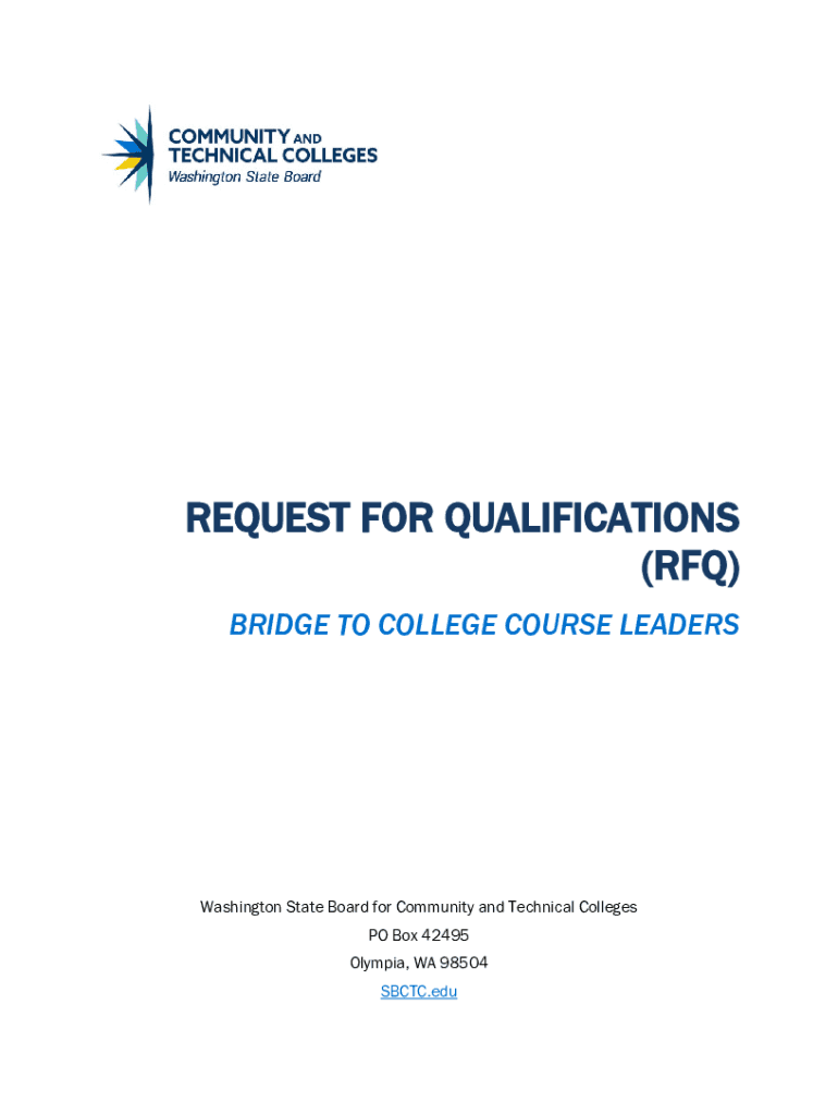 Get the free Bridge to College Request for Qualifications - SBCTC